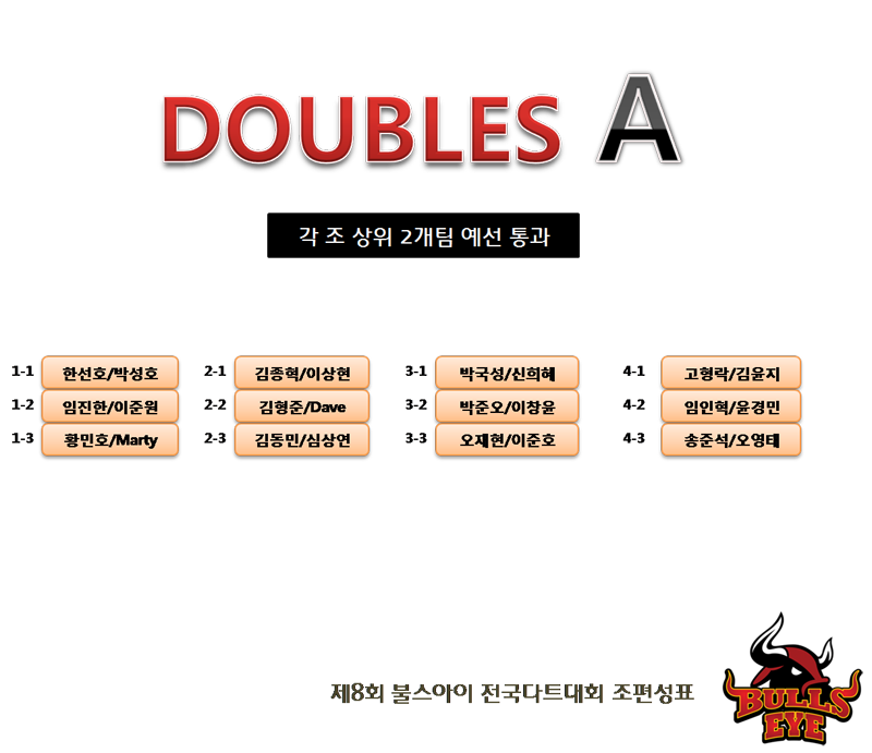 안내 | 제8회 전국다트대회 조편성표 페이지 정보 작성자 불스아이 작성일2018-10-19 이전글 다음글 본문 일요일 오전 9시부터 엔트리 확인을 하면서 신청서에 사인을 받습니다. 반드시 본인 신분증을 지참하셔야 합니다~ 목록